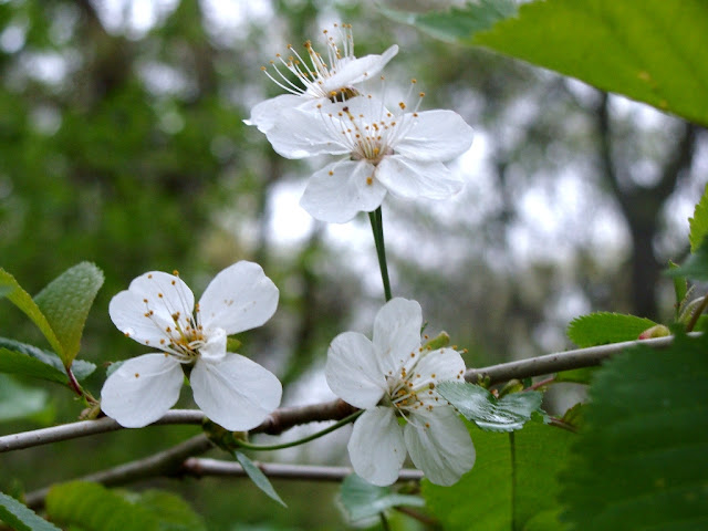 Today my doggy and I went for a long stroll through Vienna's Green Prater. Although the weather was cold and rainy, we enjoyed the lonely walk along the old arms of the Danube. The fresh green leaves and white blossoms on the trees showed us that Spring was actually there.